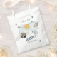 Célébrez le jalon spécial de votre enfant avec ce sac d'anniversaire à thème magique pour l'espace extra-atmosphérique. Avec des planètes imaginaires, la lune et les étoiles en couleur marine et or. Ces Extérieur Espace 1er Anniversaire Galaxy Sun Moon Stars and Planets Favor Sacs sont parfaits pour une simple fête d'anniversaire. Le design moderne et fantaisiste met en scène un arrière - plan bleu marine couleur aquarelle orné d'un soleil éclatant jaune, d'une lune grise souriante, de planètes aux couleurs pastel et d'étoiles dorées éparpillées.