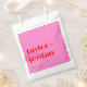 Ajoutez une touche unique et mémorable à votre réception de mariage avec ces sacs-cadeaux de mariage personnalisés avec les noms de couple heureux! Non seulement ces sacs ajouteront un élément ludique à votre décor mariage, mais ils mettront également en valeur votre personnalité et votre histoire d'amour de manière amusante et créative. Le matériel de haute qualité assure qu'ils auront l'air superbe et tenir toute la nuit. Couleurs rose et rouge vif et polices super parfaitement assorties à votre thème mariage.