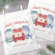Ajoutez une touche ludique à votre célébration des fêtes avec cette friandise festive ou ce sac de cadeaux de fête présentant un thème de pulls moches amusants. Des pulls aquarelles joyeux en rouge, bleu et vert sont centrés sur le devant, entourés de flocons de neige délicats pour une ambiance hivernale fantaisiste.
