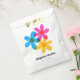 Ces sacs-cadeaux de mariage faciles à customiser offrent un style moderne et rétro avec des fleurs de marguerite hippie en jaune vif, bleu et rose magenta. Les graphismes dessinés à la main sont conçus pour imiter l'impression de style risographe classique. Tout le texte sur ces sacs est prêt pour votre touche personnalisée avec une impression noire simple contre un arrière - plan blanc propre.