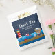 Ce joli et amusant sac de faveur dispose d'un marin marin ourson sur un pont en bois avec une mouette et un crabe. Dans l'arrière - plan il y a un phare rouge et blanc, un oiseau mignon sur un voilier, des vagues de l'océan et un ciel étoilé bleu marine. Le texte combine des polices audacieuses et serif pour un look élégant et moderne. Parfait pour un baby shower à thème nautique.