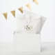 Ce sac de faveur minimaliste fait partie d'une suite mariage art déco sophistiquée, avec des cadres luxueux et des détails dorés chatoyants et complexes. Les lignes classiques dégagent un charme vintage glamour, avec une palette de couleurs noir, or brillant et gris chaud. Les détails ornés ajoutent une touche de sophistication à ce design intemporel. Ajoutez vos initiales, la date du mariage et le message de remerciement en utilisant le modèle fourni. Recherchez ID1033 pour voir d'autres produits mariages dans le jeu de conceptions.