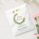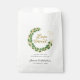 Créez d'élégants sacs personnalisés de faveur de mariage avec un message de remerciement, un mignon dicton Love is Sweet, et une couronne d'eucalyptus couleur vert émeraude. Le texte modèle permet de customiser facilement les sacs avec vos noms et votre date. Vous pouvez également taper votre propre message de remerciement.