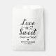Les sacs de faveur de mariage personnalisés élégants comprennent un script de calligraphie cardiaque moderne noir "L'amour est doux", ainsi qu'un monogramme minimaliste élégant des prénoms de mariée et de mariée, la date du mariage, et un message "profiter d'un gâteau" qui peut être personnalisé.