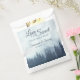 Ces beaux sacs de faveur sont parfaits pour une table de régal à votre réception de mariage. Elles présentent un design extérieur rustique avec une colline couverte d'épinettes bleues ou de pins et entourée de brume ou de brouillard. L'élégant texte du script dit "L'amour est doux s'il vous plaît prenez un plaisir" avec la place pour les noms du couple et mariage date.