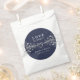 Elégant vintage chic bleu marine mariage sac de faveur avec simple coeur de corde argentée et dentelle dorée fleurie. L'amour est doux !