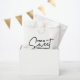 Un sac de faveur de mariage moderne et chic à offrir à vos invités. Il dispose d'une combinaison de police simple moderne et de calligraphie lettrant disant "L'amour est doux Prenez un soin" Personnalisez-le avec vos noms et date mariage.