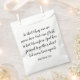 Ajoutez votre écriture inspirante préférée pour créer votre propre sac de faveur motivationnelle personnalisée pour un mariage. Conception de texte de devis biblique personnalisable pour un message positif et encourageant pour votre mariage. Cet exemple de verset provient de la Bible anglaise du monde, qui est dans le domaine public. Créez votre propre conception de texte de typographie en customisant la police de style de script de calligraphie en noir. Vous pouvez essayer une police différente face, style, taille ou couleur. Réduisez la taille de la police si vous avez besoin de plus de place pour votre devis.