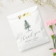Préférez les sacs parfaits pour votre bois ou mariage d'hiver. Ce design comprend un pin aquarelle et merci en calligraphie élégante. Personnalisez avec vos noms et votre date de mariage.