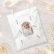 Elégant et neutre merci sac de faveur de mariage. Ce design moderne comprend une photo en arc et une grande typographie.