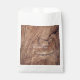Ce design est orné d'un arrière - plan en bois rustique. L'arrière - plan en bois brun simple est complété par le texte blanc et l'élément central moderne et propre qui encercle le titre. Les tons marrons du grain de bois créent une atmosphère rustique de jardin boisé de campagne. Elégant design de sac de faveur de mariage avec des éléments modernes. Des invitations de mariage et d'autres articles de papeterie sont également disponibles.