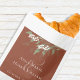 Ce design comprend un mariage en terre cuite un sac en papier de faveur modèle avec une élégante végétation fleurie, un script de calligraphie tendance, avec des lettres simples et minimalistes classiques, des noms de mariées et de mariés mariages, un feuillage feuille simple de fleurs blanches, une réception de mariage un service de faveur, un biscuits mariage bars desserts, une élégance simpliste rouille tons, un minimaliste classique un décor mariage design et créatif.