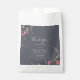 Ces sacs de faveur de mariage bleu sauvage et classique sont parfaits pour un mariage rustique. Customisez les sacs à gâteaux avec un bref message de gratitude, y compris vos noms et la date. Utilisez ces sacs pour compléter une réception de mariage, une douche nuptiale, tout événement ou fête. Le design présente des fleurs sauvages jaunes, violettes et blanches avec du feuillage dans un arrière - plan rose et vert aquarelle.