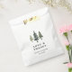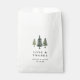 Les sacs rustiques chic mariage de faveur disent merci aux invités dans le style boisé hivernal. Les sacs présentent un trio de silhouettes de pin dans des tons riches de vert chasseur avec "amour et merci" et vos noms et date mariage. Conçu pour s'adapter à notre collection de mariages Tall Pines.