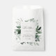 Ces merci mariage calligraphie géométrique sacs verts sont parfaits pour un mariage moderne. Le design comprend des branches et des feuilles botaniques élégants dessinés à la main dans des aquarelles. Customisez les sacs à gâteaux avec un bref message de gratitude, y compris vos noms et la date. Utilisez ces sacs pour compléter une réception de mariage, une douche nuptiale, tout événement ou fête. Le design sobre et élégant est caractérisé par une typographie de script classique et sophistiquée en noir et blanc.