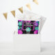 Des balles de basket et des baskets roses, violets et turquoises avec éclaboussure de peinture pop contre un arrière - plan noir dans cette grunge conception de sac d'anniversaire de basket-ball. Modifiez tout le texte en cliquant sur "personnaliser ce modèle." Assurez-vous de rebondir sur la collection Anniversaire de peinture de basket-ball Neon d’EmmyINK pour une coordination parfaite des fournitures et des décors fixes et festifs !