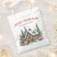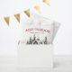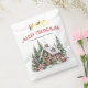 Ajoutez une touche festive à votre célébration des fêtes avec ce sac de friandises ou de faveurs de Noël présentant une scène hivernale cosy à l'aquarelle avec une cabane et une forêt. Le design montre une cabane enneigée nichée parmi les pins et les baies de houx, avec une couronne sur la porte et de la fumée s'élevant doucement de la cheminée, apportant une atmosphère chaleureuse et accueillante pour les fêtes.