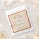 "Pampas Grass Terra Cotta Floral Palm Beach Fête des mariées Favoriser les sacs." Arrière - plan rose vif et chaleureux avec des bordures de taupe et de terre cuite, pour un design rétro chic et tendance botanique palmier et pampas herbe verte. Parfait pour la mer, la plage, le littoral et est combiné avec des roses roses roses et des fleurs d'orchidées tropicales blanches. Toutes les oeuvres ont été peintes à la main en aquarelle par Audrey Jeanne Roberts, artiste titulaire d'une licence internationale.