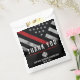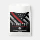 Cette conception comprend un drapeau de pompier avec des rayures noires et blanches, ainsi qu'une mince bande rouge. Ce sac de remerciement est parfait pour remercier vos invités d'avoir pris leur retraite ou obtenu leur diplôme de pompier, lieutenant, capitaine ou chef.