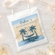 Belle fête de la retraite à thème de la plage préférez les sacs. Design composé d'une plage de sable côtier couleur aquarelle et d'arrière - plan de mer bleu avec palmiers hamac et oiseaux. Un décor de table de fête parfait pour une retraite surprise. Tout le texte peut être customisé puis personnaliser avec un nom, événement et date. Serait également idéal pour les anniversaires, les anniversaires mariages et beaucoup d'autres célébrations.