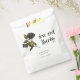 Sacoche de faveur de mariage gothique et rustique avec illustration de rose noir sur un arrière - plan blanc. Le texte dit "amour et merci".