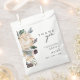 Nous avons conçu ce sac blanc à fleurs pour vous remercier préférez pour compléter votre mariage tropical foncé rustique. Avec son aquarelle bohème verdoyante et ses fleurs d'hiver boho modernes, dont la protéa, la dahlia et le lotus séché, le design est sûr de mettre en valeur votre moody, minimaliste vert et blanc thème. Modifiez le texte et ajoutez une photo pour en faire votre propre. Assurez-vous également de parcourir le reste de la collection pour trouver des éléments de coordination qui rassembleront votre mariage entier!