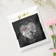 Cette collection de mariages à thème gothique foncé est adaptée à n'importe quelle période de l'année, y compris le Jour des Morts, Dia de los muertos et Halloween. L'ensemble comprend des crânes, des squelettes, des cadres de défilement ornés et des fleurs luxuriantes, le tout en noir et argent avec des accents bordeaux. Des squelettes ornés d'arc, d'ascot et de moustache sur un coeur grunge arrière - plan ajoutent à l'humeur gothique de ce sac de faveur. Ajoutez votre message, vos noms et votre date de mariage à l'aide du modèle fourni. Recherchez ID866 pour voir d'autres produits et options de couleur pour cet ensemble de conceptions.