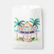 Les plus beaux sacs d'anniversaire à thème de la plage comprennent un paradis tropical avec soleil, mer, palmiers et planches de surf ornées d'une bannière "The Big One", lampes à cordes, hibiscus et feuilles de palmiers. Les couleurs sont neutres de genre, le texte peut être personnalisé pour convenir à toute personne ou à tout âge (1er ou tout "grand" anniversaire comme les 21ème, 30ème, 50ème, 100ème!), ces sacs de faveur ajouteront une ambiance estivale à votre célébration. Art par KL Stock