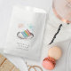 Parfaits pour les fêtes de fiançailles, les dîners de répétition ou les douches de mariage, ces sacs de faveur festifs présentent une tranche de gâteau superposé aux couleurs de l'arc-en-ciel aquarellé, surmontée de cierges magiques et de confettis aqua. Personnalisez avec vos noms et date de mariage ou date d'événement en dessous.