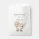 Un petit Citrouille est sur le chemin, merci sac de faveur. Ce design de baby shower fantaisiste allie la sensation d'automne douillette à une esthétique boho-chic moderne. Doté d'une aquarelle peinte à la main illustrant un chariot de bébé rustique débordant de citrouilles, d'herbe de pampas et d'eucalyptus, ce sac de remerciement est parfait pour une fête sur le thème des chutes. La palette de couleurs douce et crémeuse et les polices élégantes créent une atmosphère chaleureuse et accueillante, à la fois raffinée et douce.