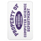 Property Of Computer Science Department - dunkle lila collegiate Stilschrift mit binärem Code Xs.