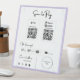 Dies ist die beste Vorlage für QR Codes für die Bezahlung per Telefon. Es ist vollständig anpassbar und Sie können alle Symbole, Labels und mehr ersetzen. Passen Sie Ihre QR Code Zahlung an, fügen Sie Ihr Logo, soziale Netzwerke und die 2 QR Codes ein. Wenn Sie Hilfe bei der Generierung Ihrer QR-Codes benötigen, scannen Sie die QR-Codes auf der Vorlage, die Links sind hilfreiche Anleitungen zur Erzeugung Ihrer Codes.