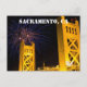 Une carte postale de Sacramento, CA avec le classique Tower Bridge avec feux d'artifice au-dessus.
