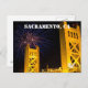 Eine Postkarte von Sacramento, CA mit der klassischen Tower Bridge mit Feuerwerk.