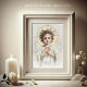 Avec une belle image traditionnelle catholique du Sacré-Coeur de Jésus comme enfant avec le coeur de Jésus, Marie et Joseph en or sur le dos. Une prière est également à l'arrière pour la mariée et le marié. Tout le texte et les polices peuvent être modifiés.