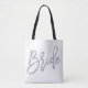 Sacs fourre-tout tout-en-un pour mariage, soirée bachelorette ou douche nuptiale avec effet parties scintillant argent (faux, imprimé comme image) texte imprimé sur arrière - plan blanc. Le sac fourre-tout est fait de polyester et mesure 16 pouces par 16 pouces et la sangle mesure 28 pouces.