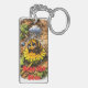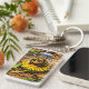 A keychain featuring a caricature of a sad bee and the text Save the Bees.