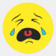 Dieses traurige kleine Emoji Gesicht hat einen schlechten Tag. Schüttelgesicht mit hellgelbem Hintergrund.