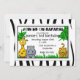 Lancez une fête safari sauvage avec cet invitation amusant. Il comprend une bordure rayée de tigre, des vignes, de l'herbe, une girafe, un hippo et un zèbre.