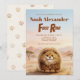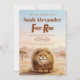 Safari theme first birthday invitation featuring an original character from the Hystrix Little Thoughts® collection. This design features Zuberi: a charming fluffy leopard character, whose name means “strong” and “powerful,” adding a meaningful and symbolic touch to this “First Roar” birthday. Set in a soft watercolor African safari landscape with warm earth tones, gentle hills, and acacia trees, this invitation creates a sweet and adventurous atmosphere, perfect for a wild one safari party or baby boy first birthday.