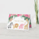 Baby Safari / Dschungeltier Dankkarte - perfekt für Mädchen Safari Geburtstage oder Dschungelduschen. Niedlicher Affe, Elefant, Löwe, Zebra und Giraffe schmücken die Karte mit rosa Dschungel-Blume, grünen Blätter und Farnen. Blume Muster wird auf der Innenseite wiederholt. Fügen Sie einfach Ihren eigenen Text in die Vorderseite und in die Innenseite ein.