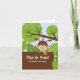 Super niedlicher Baby Affe hängt von einem Baum umgeben von Dschungel-Blätter Baby Dankeschön Karte. Die perfekte Touch für Ihre Babydusche. Matching Baby Dusche Einladungen, Porto Briefmarke & Baby Duschaufkleber sind in unserem Shop unter www.celebrateitinvites.com erhältlich.