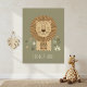 Vervollständigen Sie Ihre Safari-Dekoration mit diesem charmanten und gemütlichen Löwenporträt-Druck. Das Kunstwerk zeigt einen süßen, stilisierten Löwen, umgeben von einer prächtigen, gestreiften Mähne. Vor einem gedämpften olivgrünen Hintergrund und akzentuiert durch subtile botanische Elemente, ist das Design sowohl modern als auch sanft. Die positive Bildunterschrift "STARK & SÜß" macht dieses zu einem inspirierenden Dekorationselement, das Mut und Freundlichkeit bei einem jungen Kind fördert. Dieses Poster ist eine ausgezeichnete Wahl für ein geschlechtsneutrales oder dschungelthematisiertes Schlafzimmer oder Spielzimmer. Teil unserer koordinierten 'Kid's Safari-Dekor'-Kollektion. Hinweis: Design wurde auf Grundlage von generativen Inhalten adaptiert.