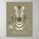 Verleihen Sie dem Raum eines Kindes einen Hauch von ruhigem, wildem Charme mit diesem bezaubernden Zebradruck. Das Kunstwerk zeigt ein süßes, handgezeichnetes Zebra vor einem beruhigenden, gedämpften olivgrünen Hintergrund. Sanfte botanische Illustrationen umgeben die zentrale Figur und verleihen dem Stück eine sanfte, safari-inspirierte Atmosphäre. Die Bildunterschrift "LOVE YOUR STRIPES" vermittelt eine positive Botschaft der Selbstakzeptanz und Einzigartigkeit. Dieser Druck ist perfekt, um das Schlafzimmer oder Spielzimmer eines jungen Kindes mit zeitgenössischer, beruhigender Kinderzimmer-Kunst zu dekorieren, die die Fantasie und Freude weckt. Teil unserer aufeinander abgestimmten 'Kid's Safari Decor'-Kollektion. Hinweis: Design wurde in Anlehnung an generative Inhalte adaptiert.