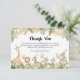 Eine Safari-Dankeschön-Karte mit Safari-Tiergrafiken in Grün- und Beige-Tönen und einem modernen Schriftart. Diese Flachkarte hat das Wort "danke" und eine bearbeitbare Danksagung auf der Vorderseite und ein Tiermuster auf der Rückseite. Diese Karte ist die perfekte Art, um den Gästen für ihre Geburtstagsgeschenke zu danken. Pair mit allem in der OSCAR Kollektion für ein einheitliches Aussehen.