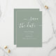 Voici notre mariage minimaliste et tendance Save the Date card, avec une couleur verte saga sereine. . La délicate calligraphie blanche ajoute une touche de sophistication à cette carte Sea of Greens Save the Date, ce qui en fait un choix idéal pour une célébration mariage moderne. Sélectionnez le type de papier selon votre souhait avant d'acheter.