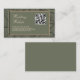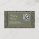 Sage grün, beige und schwarz elegante Vintage Kalligrafie minimale klassische Blumenbudget personalisiert QR Code Hochzeitsgehäuse Karte. Diese Karte kann einfach mit Ihrem persönlichen Text bearbeitet werden.