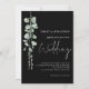 Sage Eukalyptus Moderne Script Black Wedding. Moderner botanischer Stil, mit einem handgeschriebenen Set für Hochzeiten und der Erholung des Textes, das auf schwarzem Hintergrund in Weiß gehalten wird. Ein eleganter Zweig von Aquarelleukalyptus-Blätter verläuft auf der links Seite entlang. Sie können die Farbe des Textes und des schwarzen Hintergrundes auf jeder Seite ändern, wenn Sie dies über die Option Weitere bearbeiten wünschen.