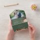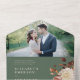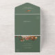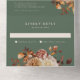 Cette élégante faire-part de mariage tout-en-un est décorée à la main de feuilles d'aquarelle brulés d'orange, de cuivre et de terre cuite, de dahlias crème et beige, et de beaux roses de couleur rouille sur un arrière - plan vert sage. RSVP est inclus avec cet invitation élégant. Trouvez les articles correspondants dans la collection Sage Autumn Romance.
