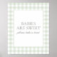 Sage Gingham Baby Shower Babys sind Sweet Sign Poster